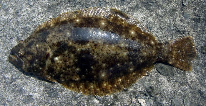 カレイと似ていますが,背を上にしたとき,ヒラメは頭が左向きになることから名前が付いていますが,カレイの仲間でも左を向く場合もあります。カレイと違い動きは俊敏で,目の上を通過する小魚などを捕食する魚で,その点ではドンコと似ています。また資源保護のため,放流も盛んですが,養殖されたものと天然物は裏側を見れば一目瞭然です。天然物は真っ白で,養殖物や放流期限の物はそうではありません。齢70を超えてもなおいまだ現役の仲買の父親はこれを何度も私に力説します(爆)。ちなみにこの個体の裏側は真っ白でした。流石に高級魚なので,刺身も絶品です。県内K市S漁港産2015.4.21