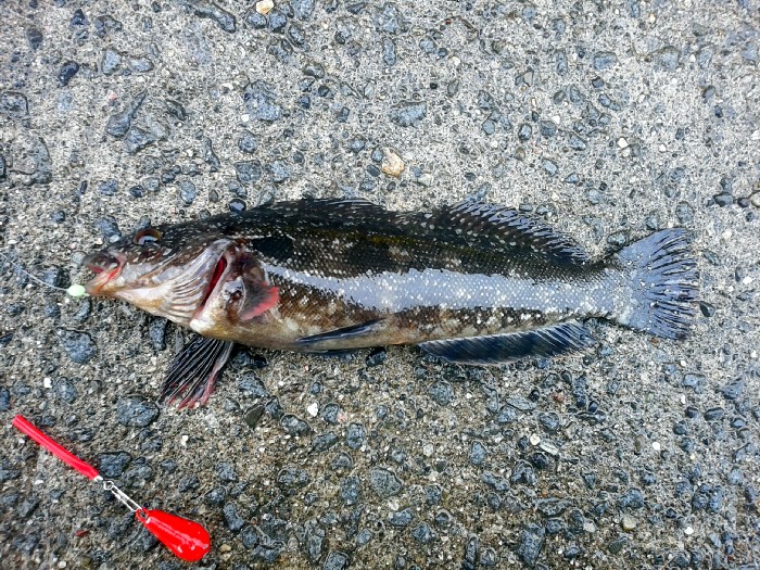 アイナメとよく似ていますが,尾鰭の形状や側線の数などで判別可能です。また,アイナメほど大きくはならないようです。味もアイナメより劣るようですが,小型の個体しかいないのも影響しているような気がします。県内U市A漁港産2014.1.8