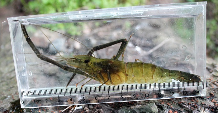 テナガエビと同様に,汽水域を回遊する性質がありますが,テナガエビが下流側に多いのに対して,ミナミテナガエビはもっと上流域まで遡上するようです。そのためか,ハサミはテナガエビよりは太く,足のツメの部分もテナガエビと比べると太くて力強い特徴があります。県内■湖産2018.3.29
