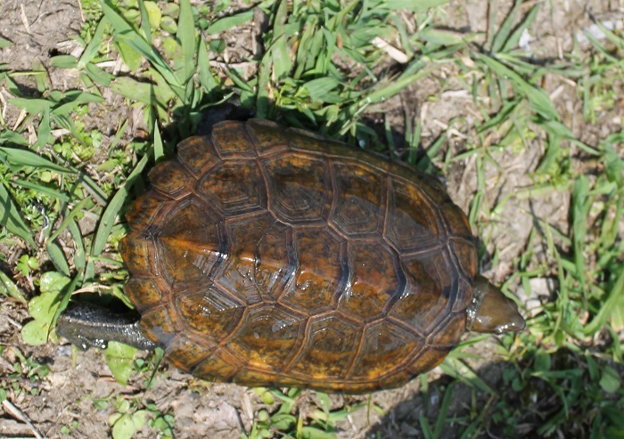 ミシシッピアカガメやクサガメの移入により野生での個体は激減しているようです。飼育個体による繁殖も盛んなので絶滅することはないと思いますが,確実に生息に適した場所も減っていると思われます。県内■湖産2019.4.7