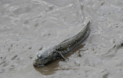 汽水域のなどの河口のカキ殻などが多い所に生息しているようです。釣れたこの個体も,干潮時は干上がってしまうようなところでHITした個体でした。釣りあげた直後は真っ黒い個体が多いのですが,しばらくするとあっという間に色が抜けてしますので,あの魚との共通点なのでしょうか(謎)。県内K市M港2015.9.22