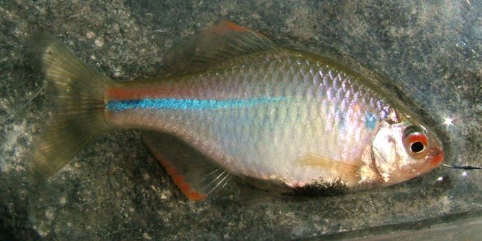 混血化が問題になっていますが,見た目では判断できないので,私はあまり気にしておりません。個人的には,オスの婚姻色に関してはたなごの中では一番美しい魚だと思っております。なお,この個体が釣れた場所は以前はバラが多かったのですが,今は完全に消滅しました。原因は色々あると思いますが,以前はここにバラ釣り狙いで来ていたのに,今はオヤニラミ狙いで来ているので,それが最大の理由だと思われます(謎)。県内※池B場所産2006.7.9