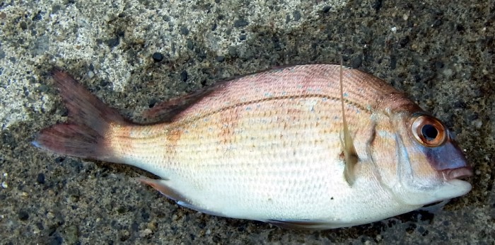 日本人の中で,認知度が最も高い魚の一つです。放流活動も盛んに行われているようで,写真の個体も,波止の内側で群れていた個体なので,放流後間もなく釣れた個体だと思います。漁業規則関連でもうるさい魚なので,速攻でリリースしました。県内U市S漁港産2013.8.14