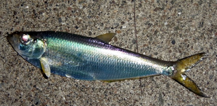 中九州では有明ターポンとも呼ばれています。一般的には外道としてあまり好まれていないようです。大型になる個体は50㎝ほどになるそうです。引きもそれなりにあり,掛ると面白い魚ですが,残念ながら,あまり美味しくいただける魚ではありません。骨が多すぎです。県内K市S漁港産2013.9.24