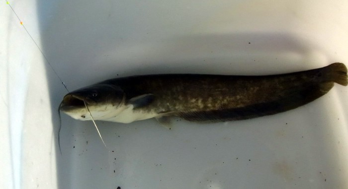 中九州ではどんかっちょと呼ばれています。底物全般がドンコと言われるように,雑魚の扱いを受けておりますが,愛すべき魚です。稚魚は網ですくうといくらでも入ってきますが,大型個体は少ないです。食べても白身で美味しい魚のようです。一度食べたときは,調理に失敗し水っぽくなってしまいましたが,また試してみたいと思います。県内※池B場所産2012.4.22