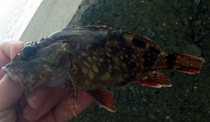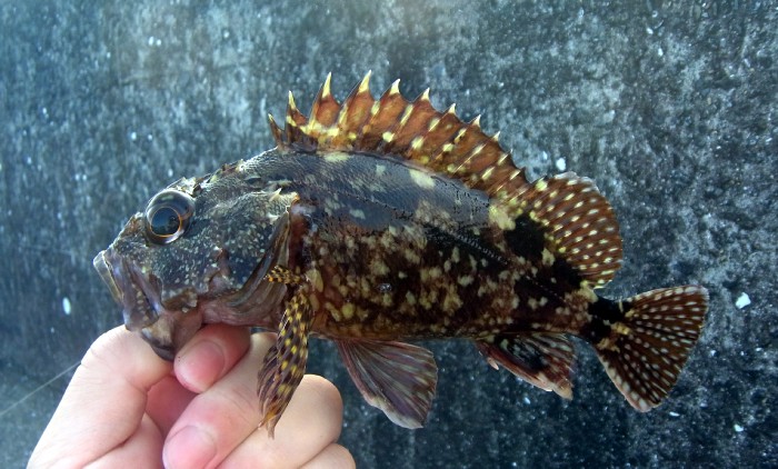 中九州ではガラカブと言います。個体によって色の違いが多く,赤みがかった個体が多いようにも見えますが,そうでない個体もいます。棘が鋭く,油断すると痛い目に遭います。とても美味しい魚で,刺身もから揚げもいける魚です。県内K市H漁港産2014.6.29