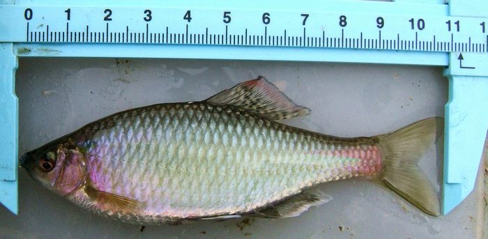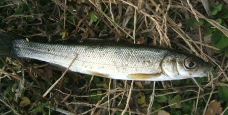 【カワメバル】の別名もありますが,釣りをしていても大変面白い魚です。ほとんど横に走らないので,居食いに近く,ウキや目印にはほとんど当たりは出ません。しかし,ダイレクトに手元に伝わってくるアタリがありますので,それで合わせを入れれば,釣れます。絶滅危惧種には指定されていますが,大型の肉食魚が近付けない壁際のポイントでは,ほとんど無敵の存在なので,たなご類にとっては脅威の魚だと思われます。県内※池A場所産2011.3.31