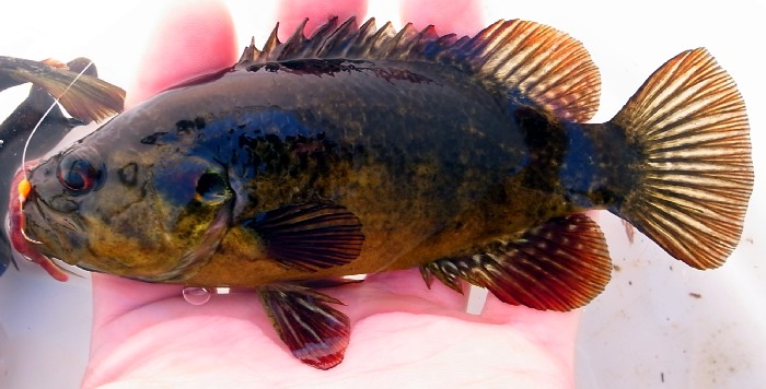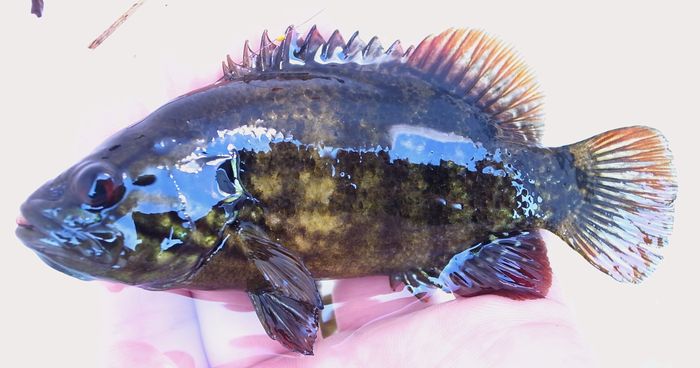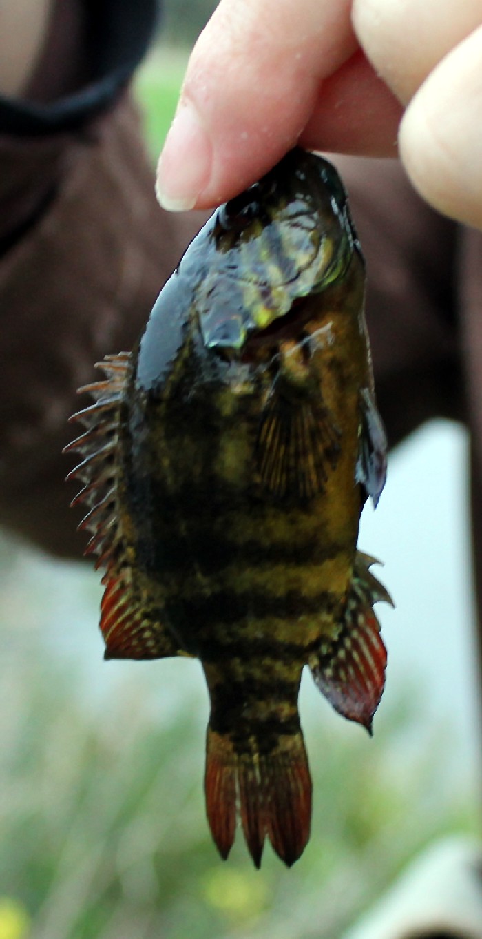 日本では唯一つのスズキ目の純淡水魚です。湧水が流れているような,水質の良い水域に生息し,岸辺の水草や岩場の陰などに巣をつくります。オス同士が縄張り争いをするときは,鰓を広げてお互いを威嚇し合いますが,その様から「ヨツメ」と言う呼び名もあるそうです。釣り人に対しても,このポーズをしてきます。生息地が水質的にいいところなので,もちろんそういうところは減少しているので,保護されているところも多いようですが,逆に放流されているところも多いようで,首都圏でも定着しているところがあるようです。写真の個体も,生息地の南限とされている場所から相当離れたところで釣りあげた個体です。県内☐湖O場所産2013.3.29