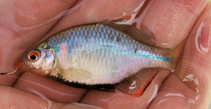 かなり暑い日に釣り上げた個体です。8月ですが,湧水の影響で水温が低いので,婚姻色全開の個体でした。県内■湖O場所産2010.8.1